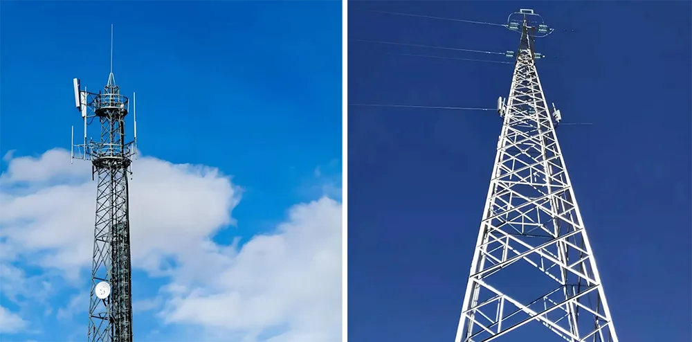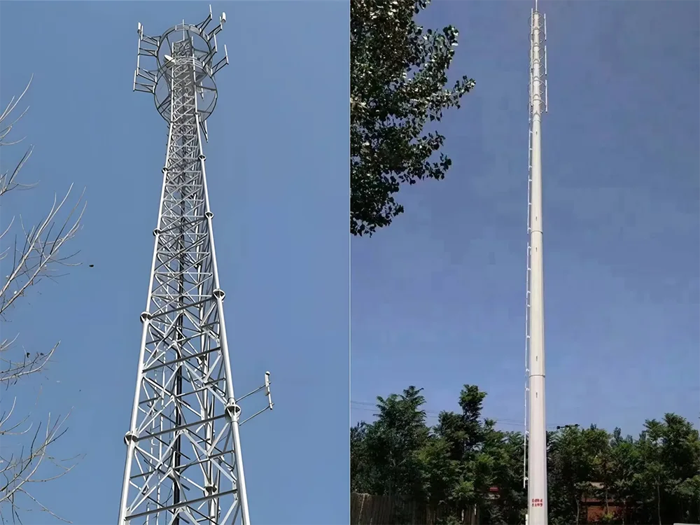 Szög acél tornyok: Az egyenletesen elosztott rácsszerű rácsos szerkezetnek köszönhetően ezek a tornyok erős teherbíró képességgel rendelkeznek. Egyszerre több antennakészletet és mikrohullámú átviteli berendezést támogatnak, így különösen alkalmasak nyílt területekre, például külvárosokra és hegyvidéki régiókra, ahol nagy kapacitású kommunikációs terhelésre van szükség.